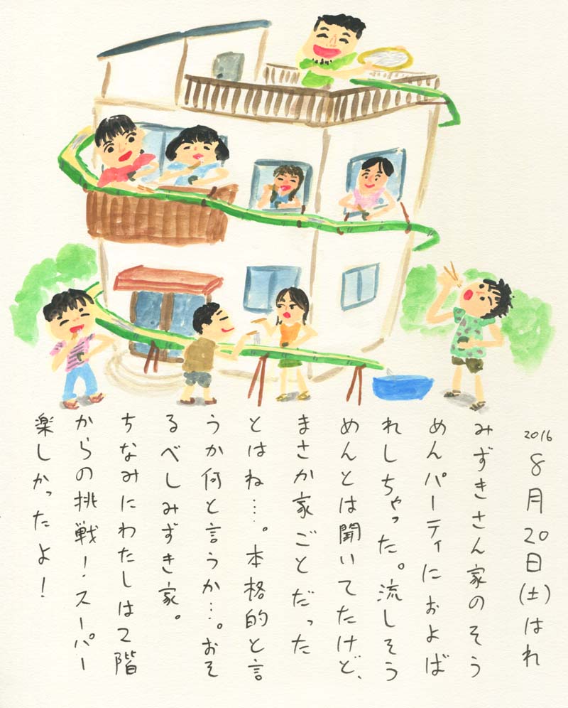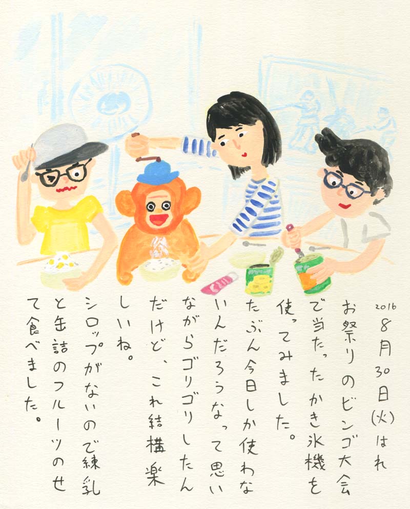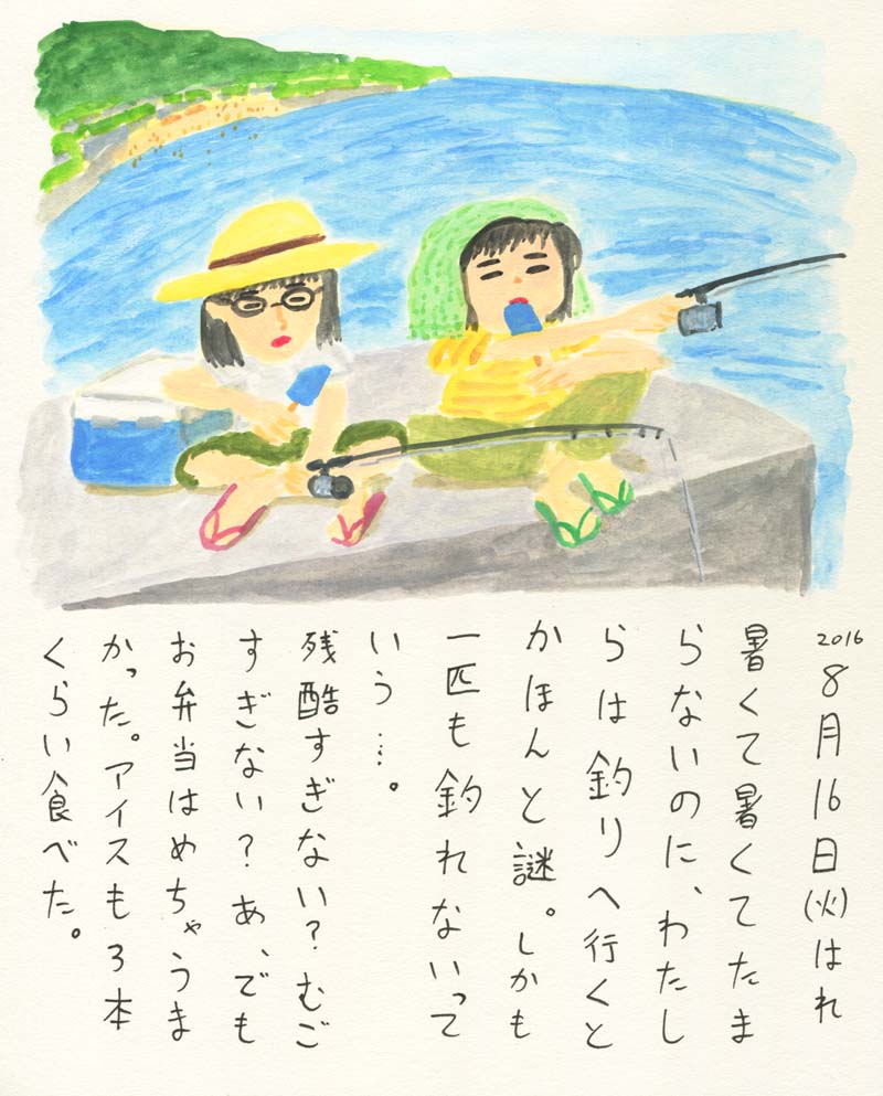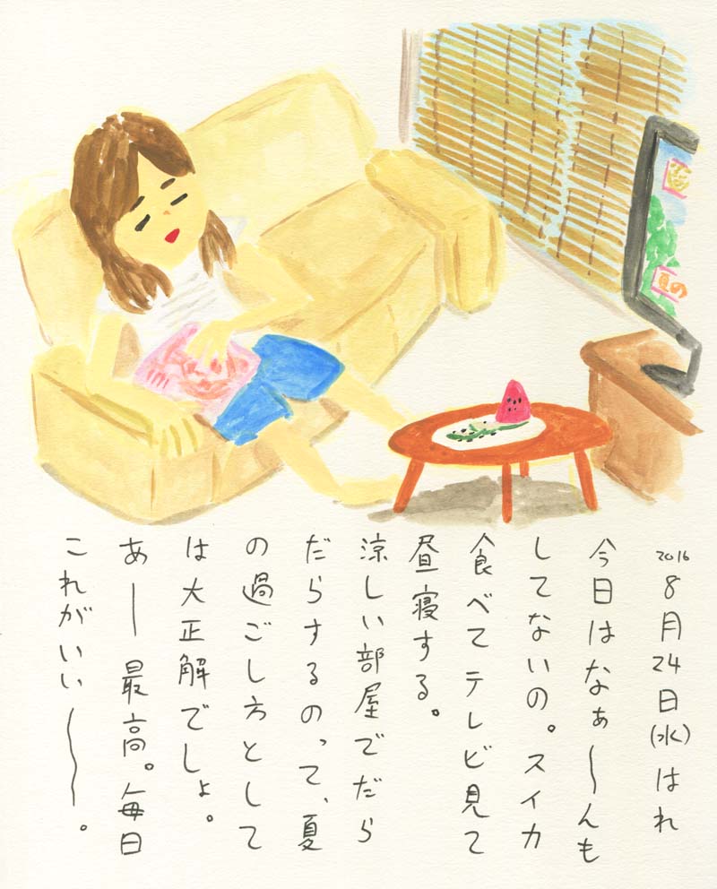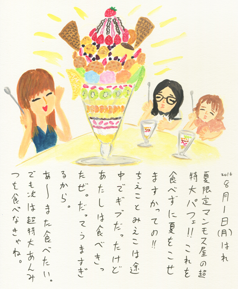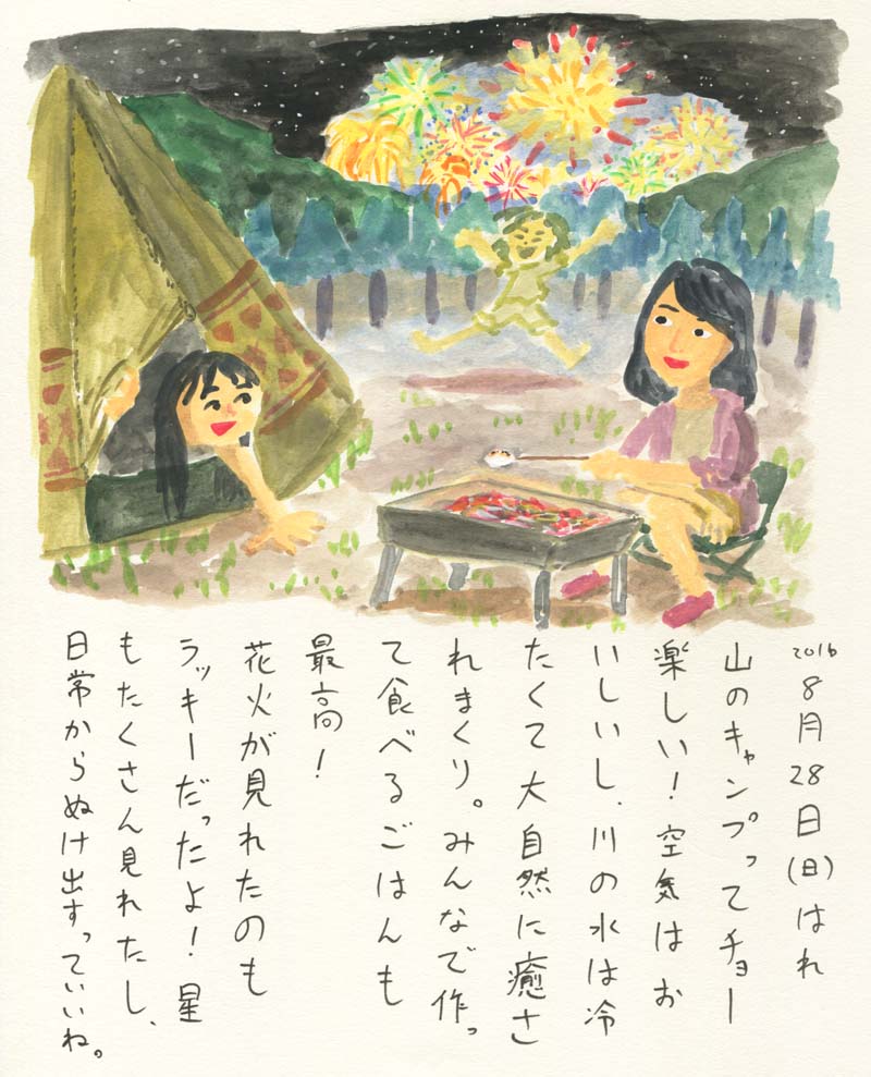 全部で31枚の絵日記を描くことで8月1日から8月31日まで1カ月間の絵日記が完成しました。絵日記の内容は文章を頂いたのではなく、完全にぼくの想像なのですが、「こんなことあったかもしれない夏」をテーマに描かせていただきました。