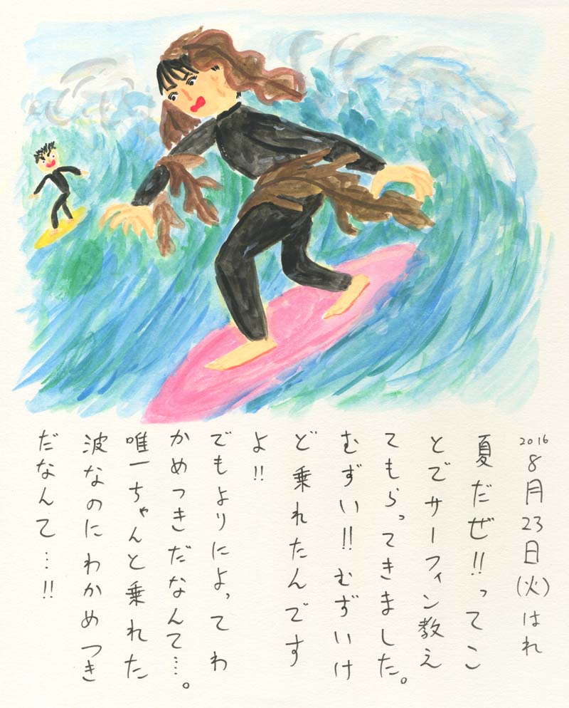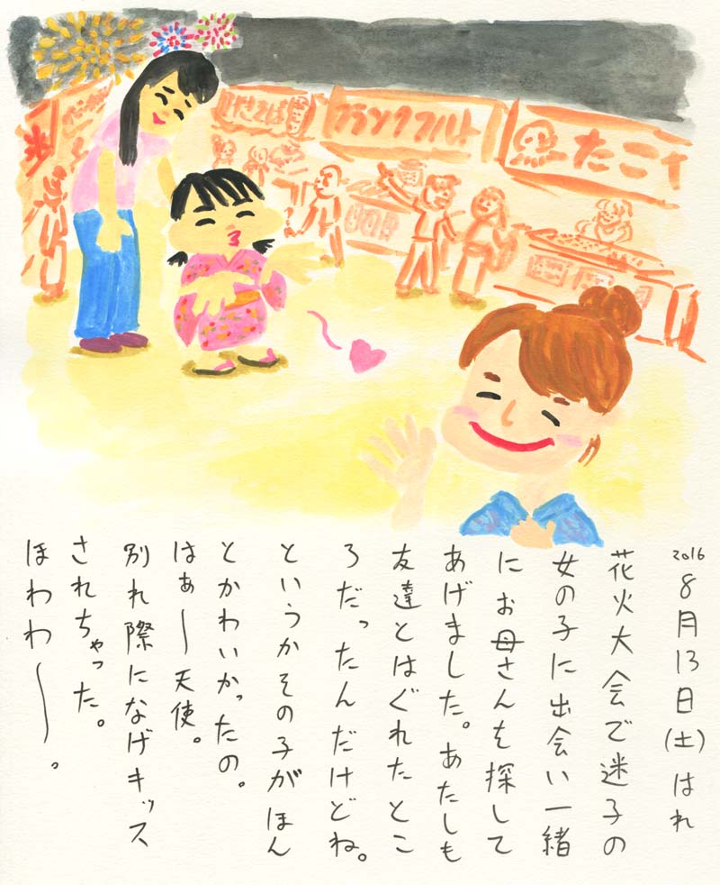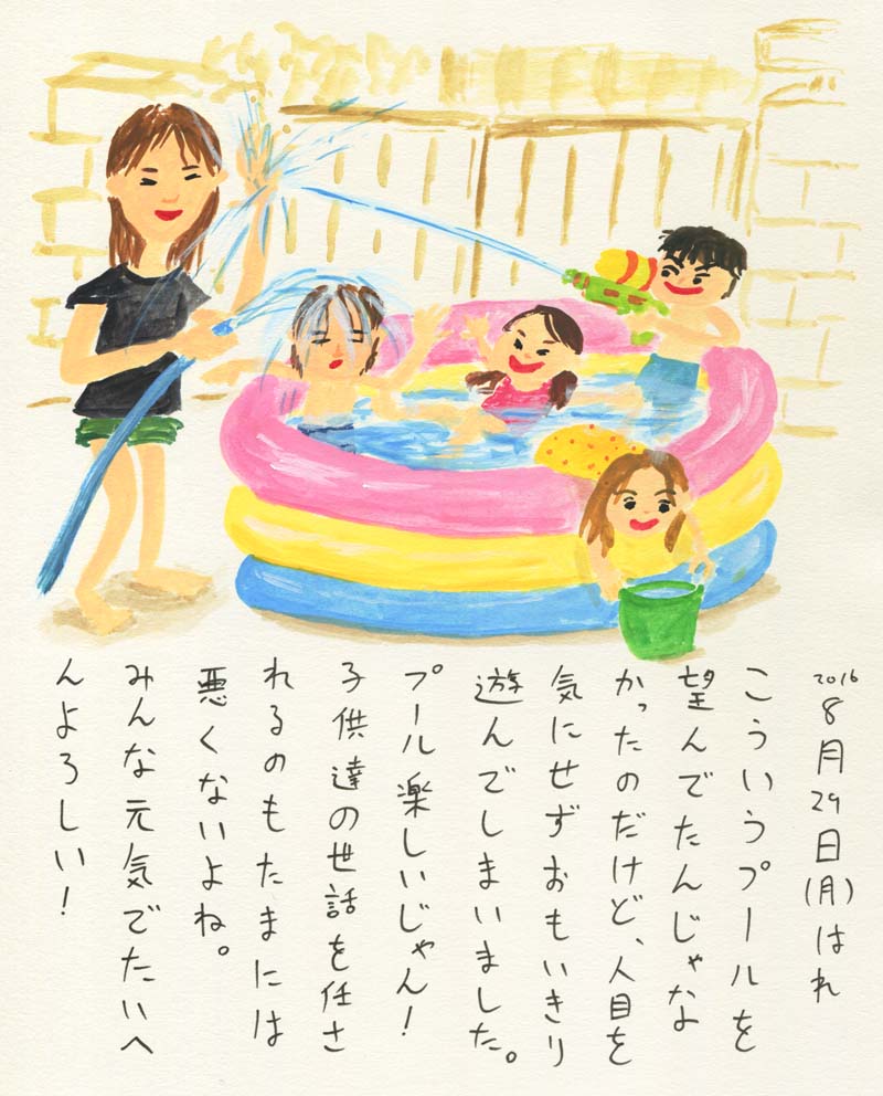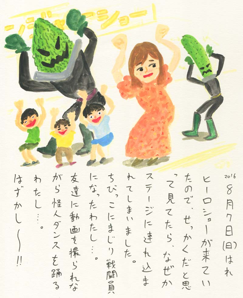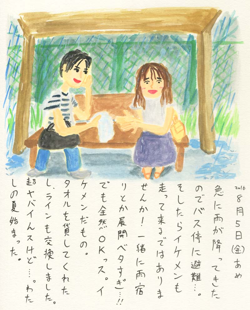 全部で31枚の絵日記を描くことで8月1日から8月31日まで1カ月間の絵日記が完成しました。絵日記の内容は文章を頂いたのではなく、完全にぼくの想像なのですが、「こんなことあったかもしれない夏」をテーマに描かせていただきました。