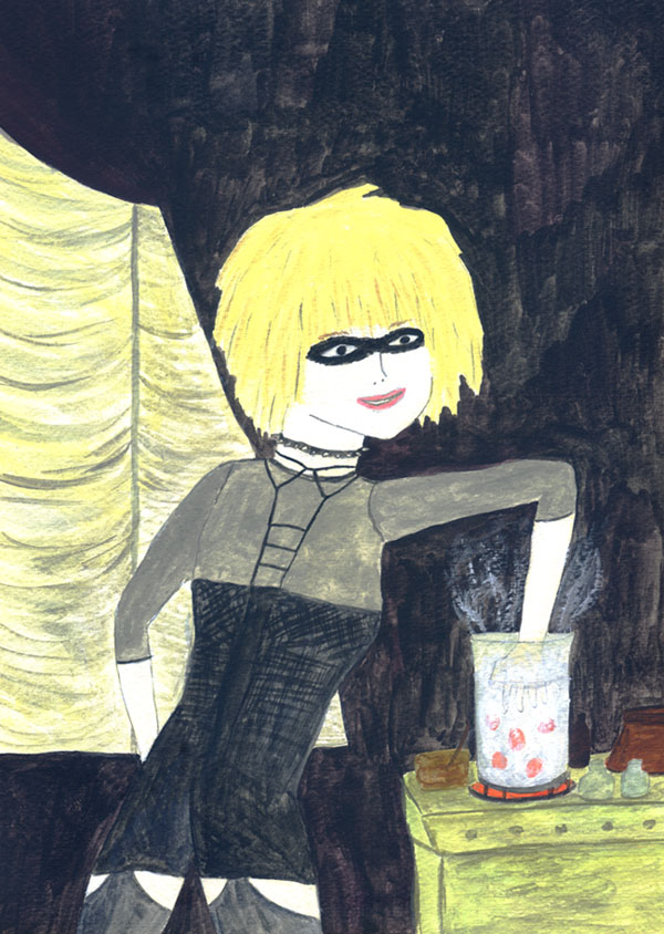 この絵はレプリカント(人造人間)のプリスが、沸騰したお湯の中から素手でゆで卵を取るどや顔シーンです。